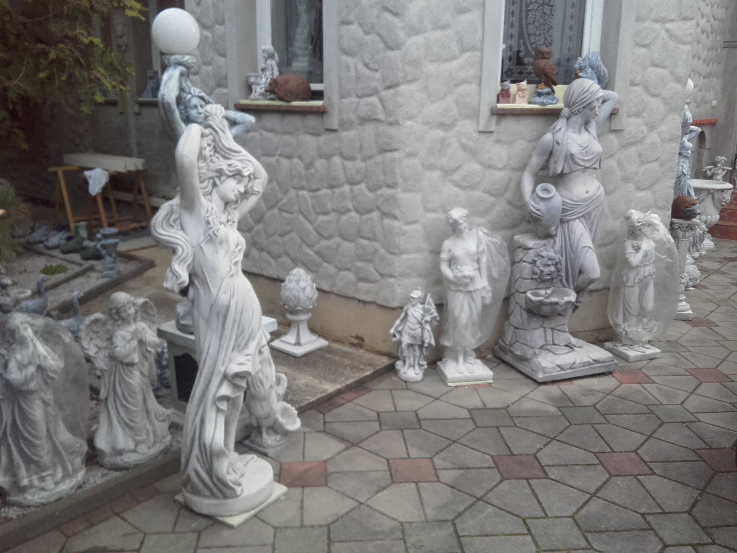 Kipi iz cementa. Kakovostno izdelani. Sivo patinirani. Izdelani in patinirani tudi po želji kupca. Dekoracija za lepši dom, dvorišče, vrt, poslovne prostore. Obiščete nas lahko v Skokah – predhodna najava, tudi čez vikend…